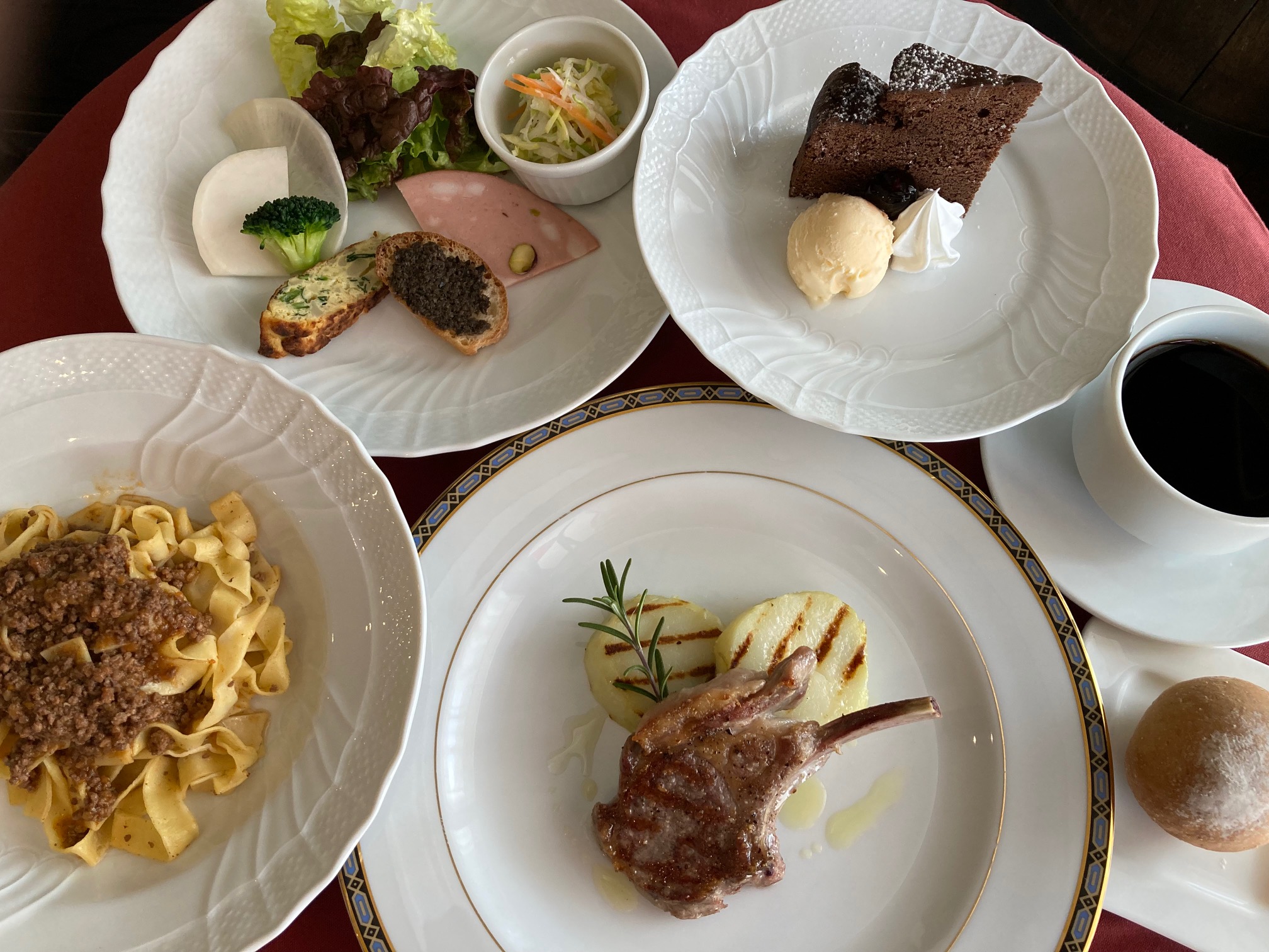 (セット内容・・・前菜・手打ちパスタボロネーゼソース・豚または羊料理・デザート・ソフトドリンク)