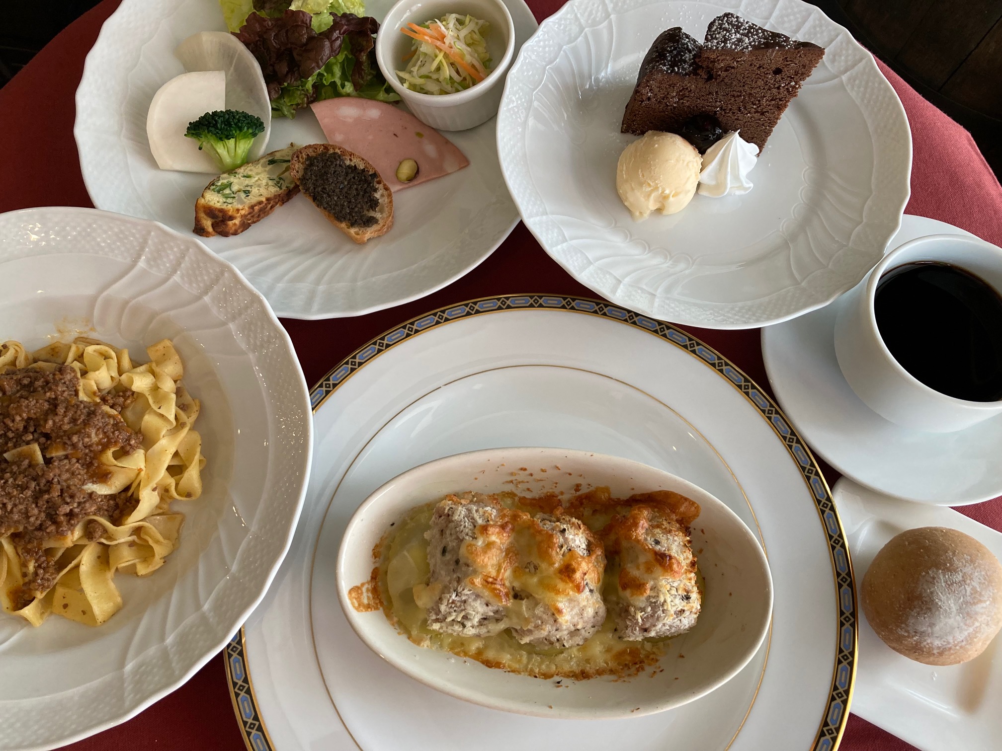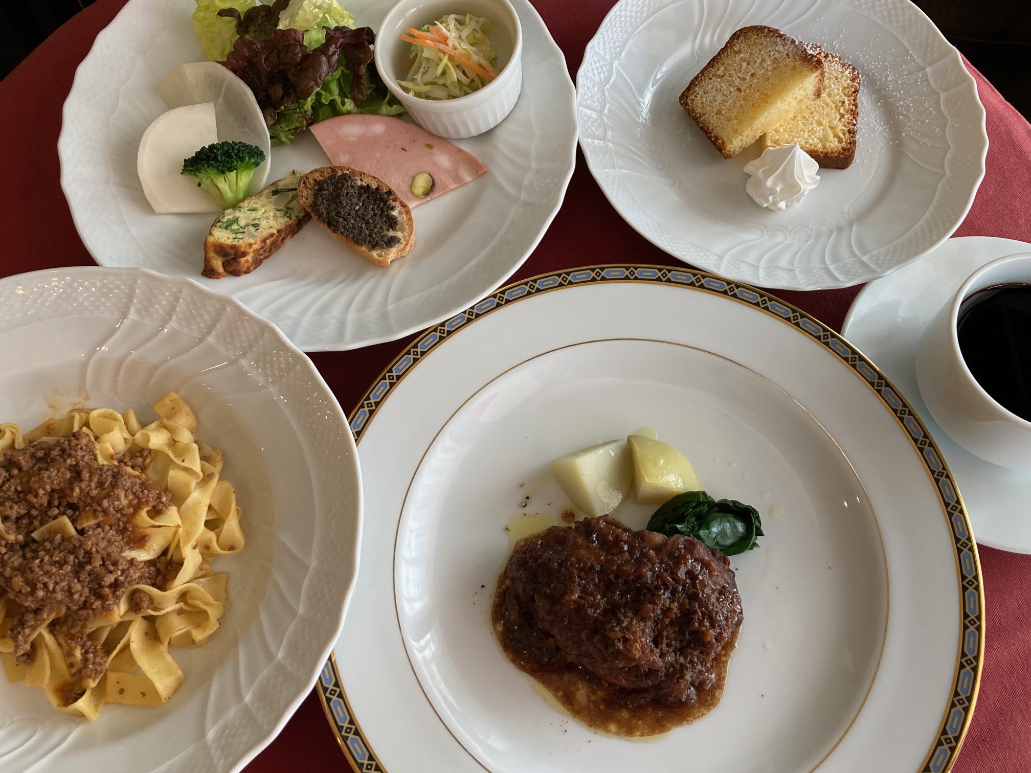(セット内容・・・前菜・手打ちパスタボロネーゼソース・鶏料理・ミニデザート・ソフトドリンク)